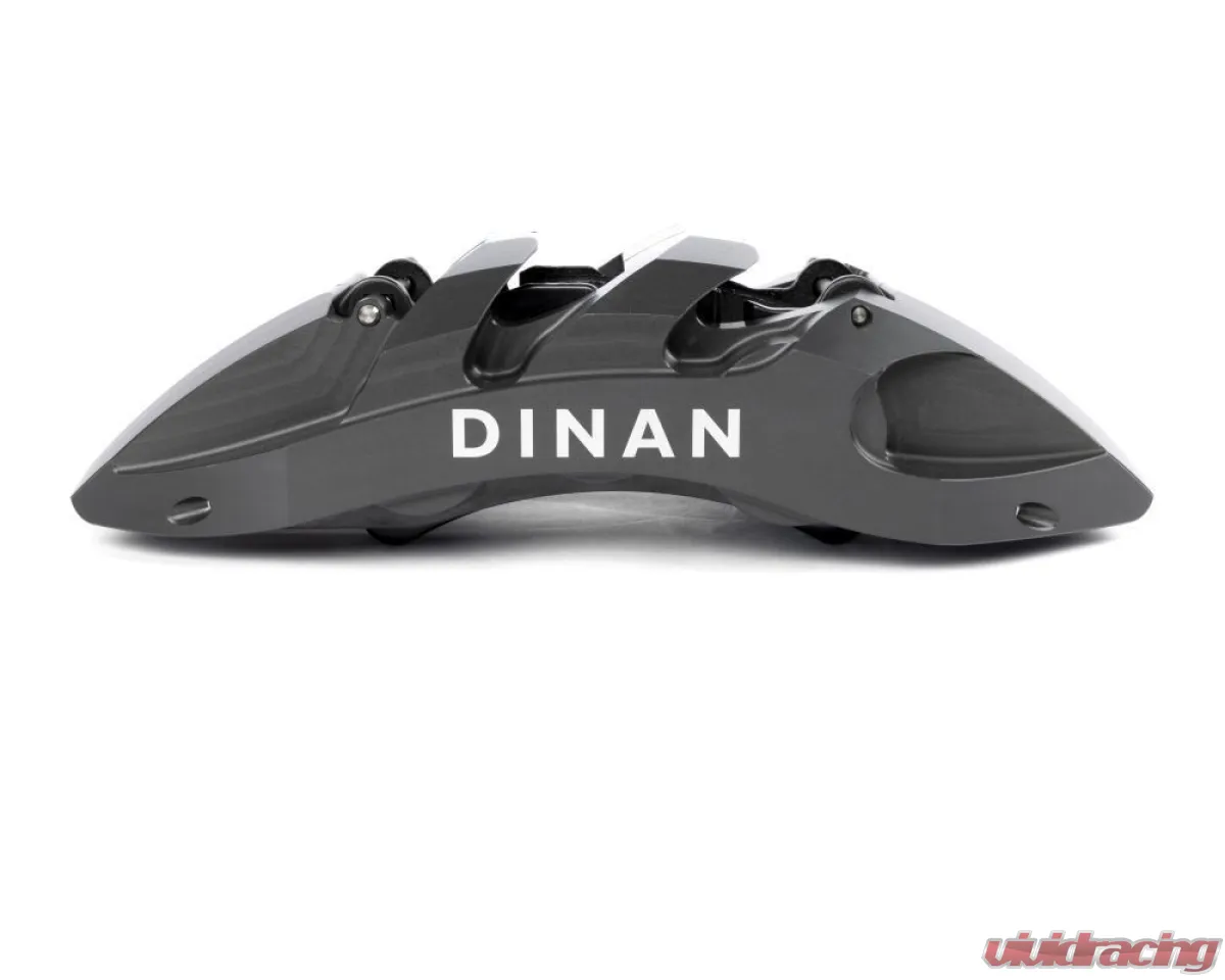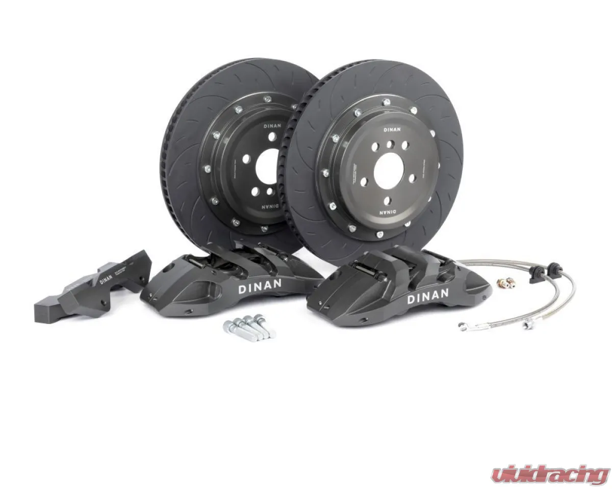 Dinan’s 395x34mm 2-piece 6-piston Big Brake Kit (BBK) is an ultra-high-end solution for maximum stopping power. Each feature-packed solution is specifically tailored to your vehicle and provides exceptional stopping-power in a wide operating range from daily driving to professional racing. Because of this, the system provides the correct brake bias and integrates seemlessly with the ABS and stability systems which is critical under emergency braking situations. This upgrade handily out-brakes, out-lasts, and out-performs any non-vehicle application specific OEM swap kits, and rivals much more expensive top-tier systems. Whereas most systems on the market either make heavy sacrifices to either look fancy, cut weight, or cut costs, the Dinan system is designed to simply brake better, last longer, and stand the test of time!